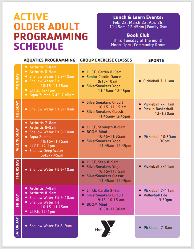 Providing seniors with a glance at all scheduled programming can prove tricky, so I developed this clear breakdown calendar.